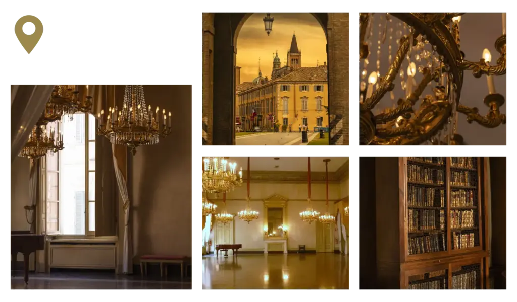 La location scelta per l’evento, Circolo di Lettura e Conversazione all’interno del Palazzo della Riserva, un gioiello nascosto, preservato dal lavoro quotidiano svolto con passione e tenacia dal Cavaliere Dottor Massimo Fraconti e dal Commendatore Dottor Francesco Ferrari. Dal 1858 queste sale, ampie e solenni, ospitano la Società Parmense di Lettura e Conversazione – il circolo culturale più longevo della penisola – e sembrano sospesi nel tempo.